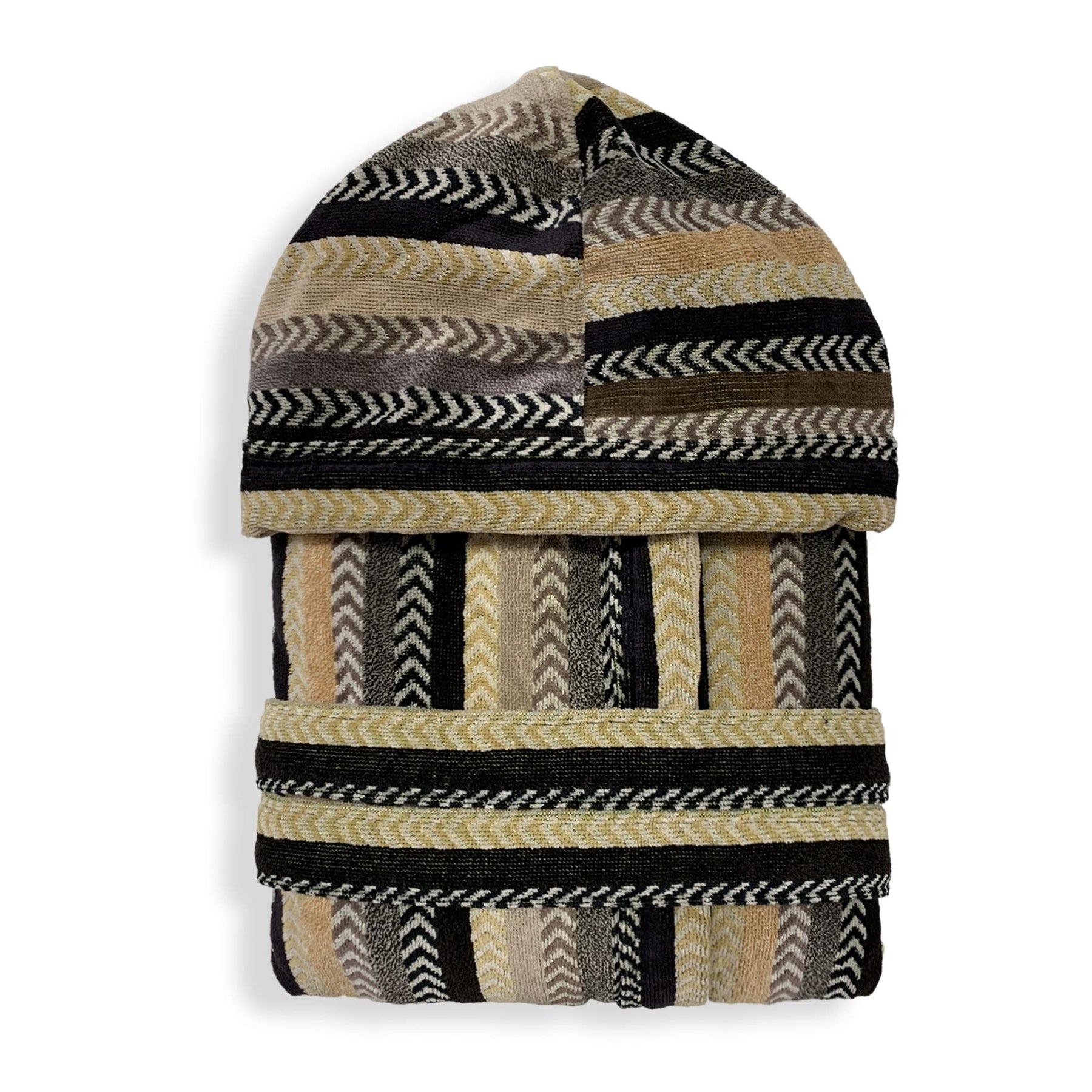 Il design jacquard elegante dona un tocco raffinato, perfetto per chi cerca uno stile ricercato anche nei momenti di relax. Il cappuccio avvolgente, le due tasche laterali e la cintura regolabile in vita offrono praticità e vestibilità perfetta.